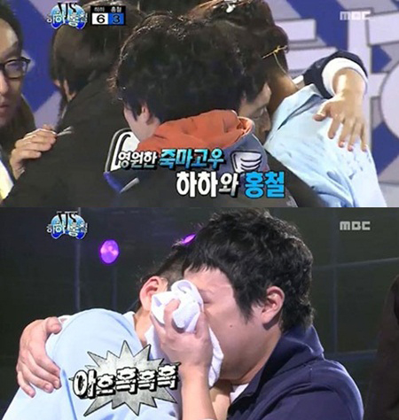 月後に見るなんてそれでも良い . " , " ハハとノ・ホンチョルが対決終わって泣くのに一緒に泣く